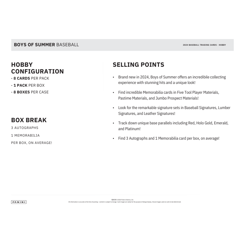- Bringing the Summer feel of baseball, Boys of Summer features top Prospects, Rookies, and Legends in a unique base set as well as autograph sets like America’s Best Signatures and Characters of the Game featuring the likes of Mariano Rivera and Ronny Mauricio!